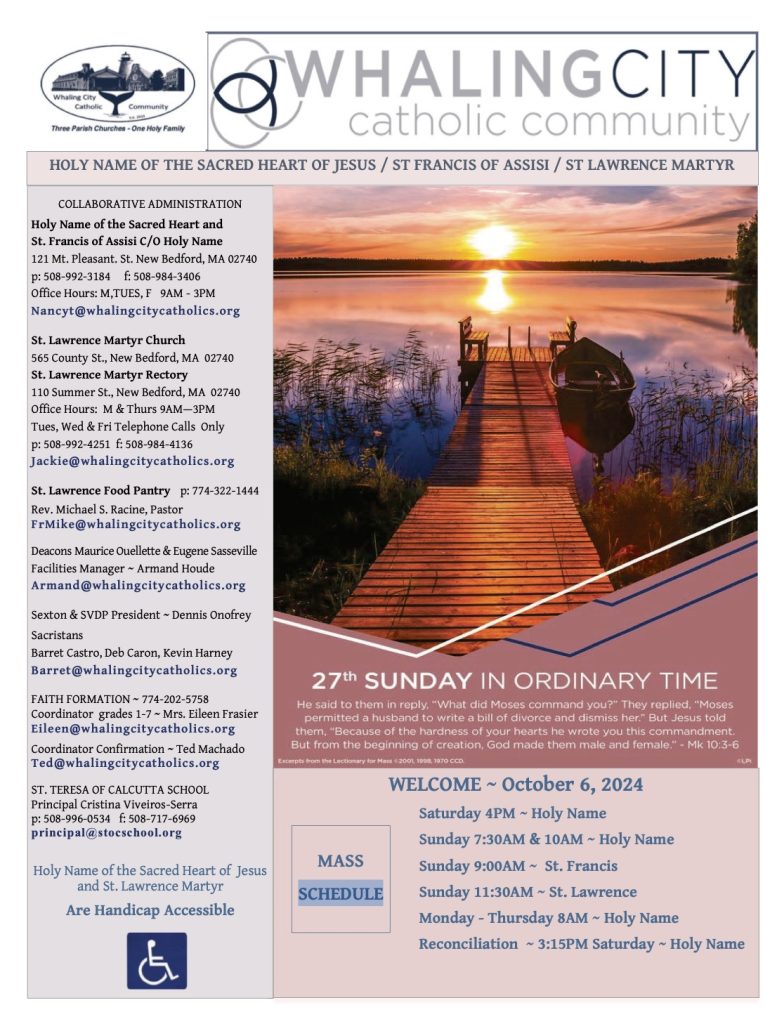 Bulletin for 27th Sunday in Ordinary Time October 6, 2024 Oct 3, 2024 To view Bulletin select image above or this link.
