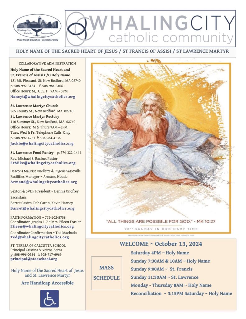 Bulletin for 28th Sunday in Ordinary Time October 13, 2024 Oct 10, 2024 To view Bulletin select image above or this link.