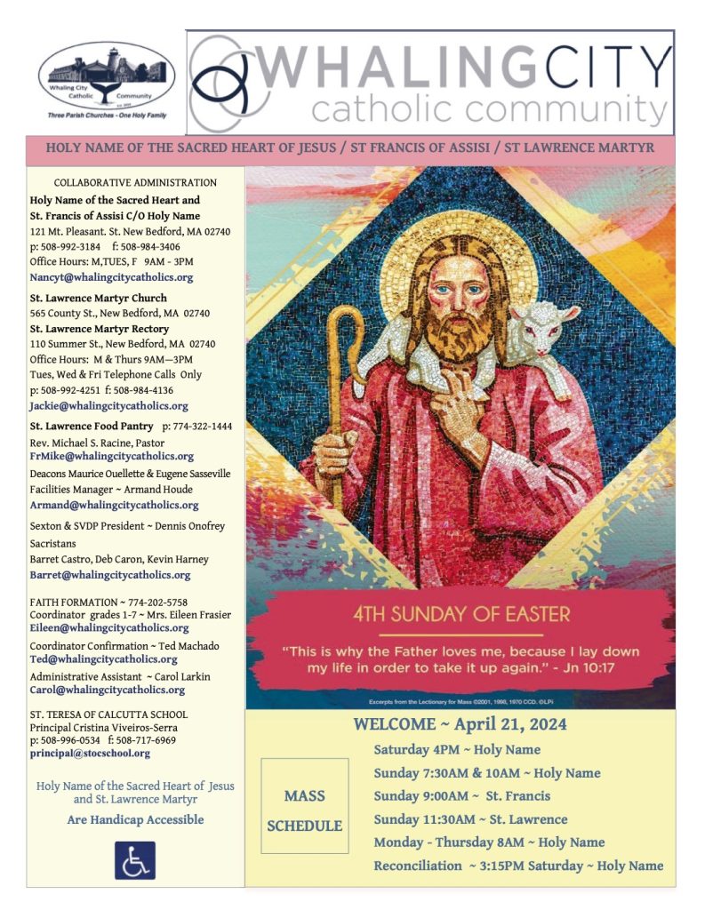 Bulletin for 4th Sunday of Easter April 21, 2024 Apr 18, 2024 To view Bulletin select image above or this link.