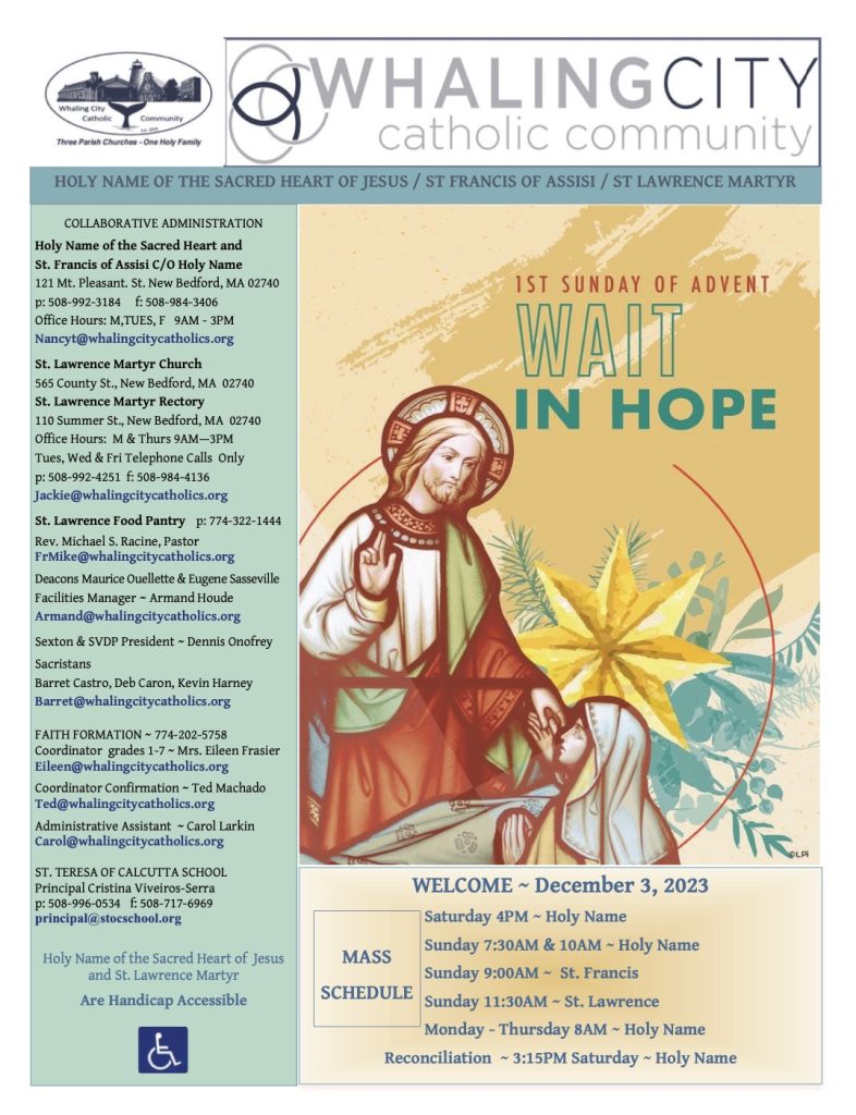 Bulletin for the 1st Sunday of Advent December 3, 2023 Nov 29, 2023 To view Bulletin select image above or this link.