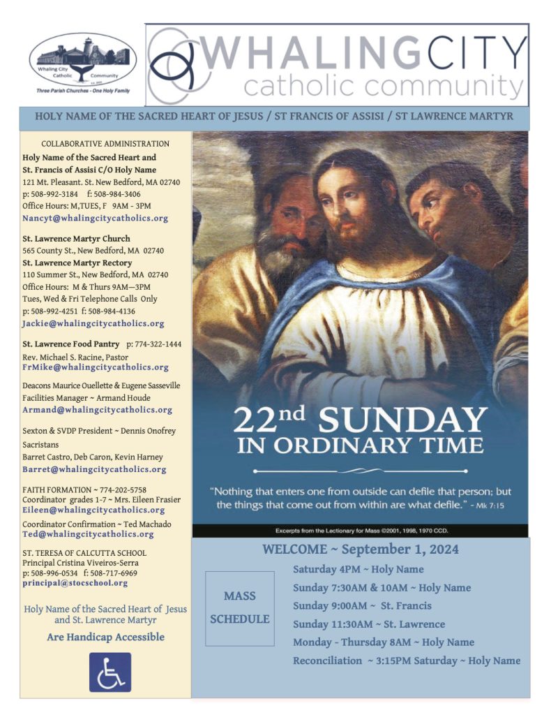 Bulletin for the 22nd Sunday of Ordinary Time September 1, 2024 Aug 29, 2024 To view Bulletin select image above or this link.