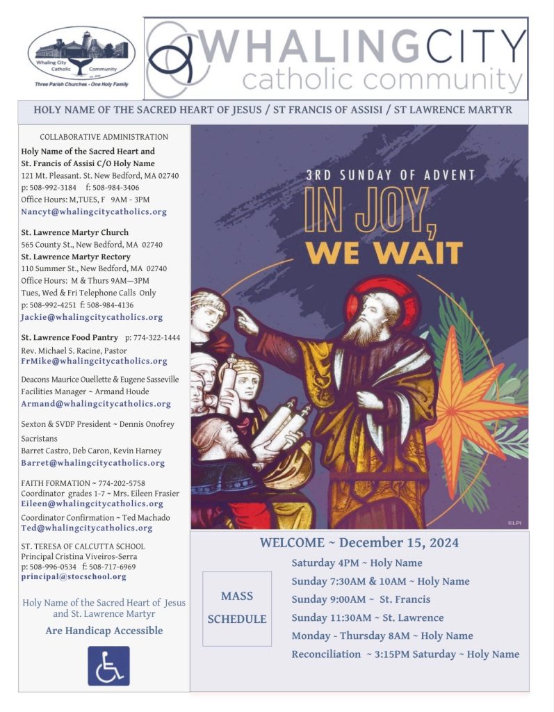 Bulletin for the 3rd Sunday of Advent December 15, 2024 Dec 12, 2024 To view Bulletin select image above or this link.