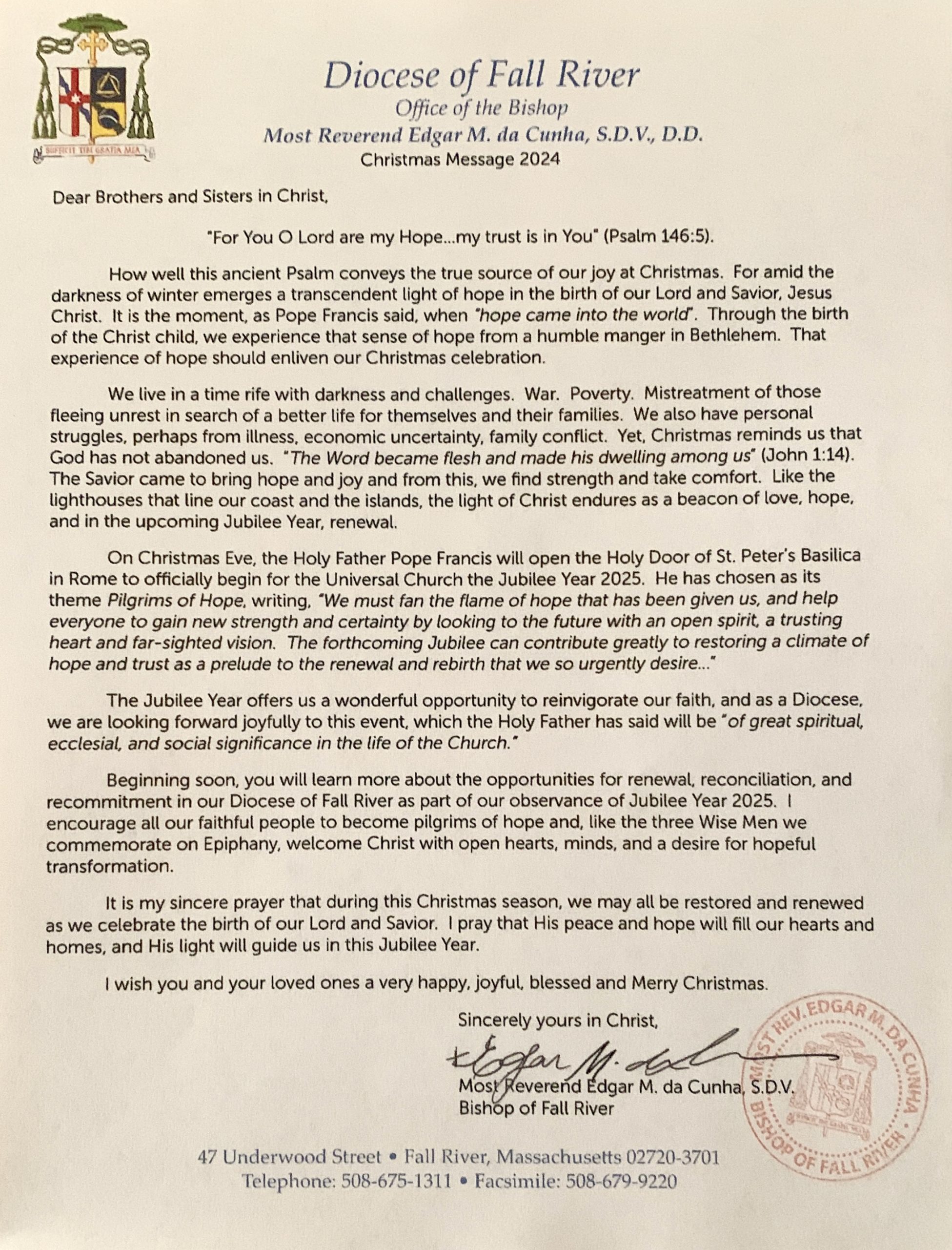 Christmas Message 2024 from Most Reverend Edgar M. da Cunha, S.D. V., D.D
